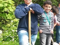 Die Delfinklasse hat am 22.4.2016 neben dem Fußballfeld einen Glücksbaum Namens Goldi gepflanzt! Es ist ein Apfelbaum. Er heißt Goldi , weil an ihm CD’s hängen, die im Licht wie Gold schimmern.
