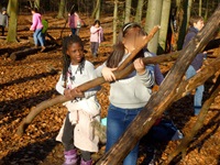 Dieses Jahr ging es für uns nach Ratingen. Wir hatten wunderbares Wetter und waren den ganzen Tag draußen im Wald. Dort haben wir Hütten gebaut, den Waldboden untersucht und eine Nachtwanderung gemacht. Am zweiten Tag gab es für uns nach dem Abendessen noch eine Disco. Müde sind wir ins Bett gefallen und – nach einer kleinen Geschichte- sind wir auch sofort eingeschlafen.